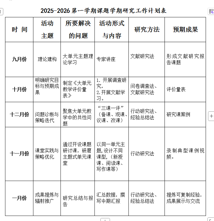 2024-2025第二学期教育科学规划课题学期计划表