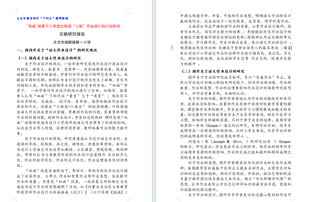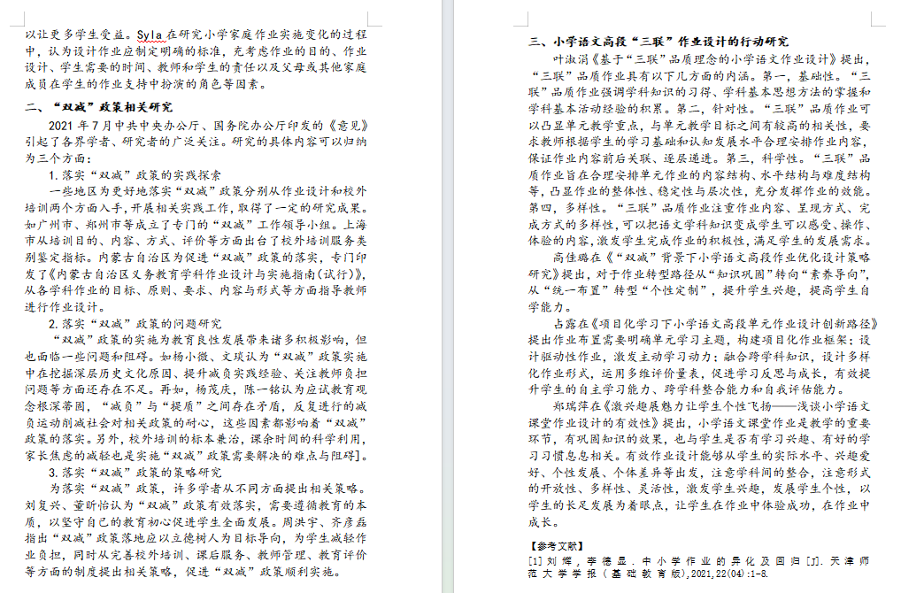 "双减"背景下小学语文高段“三联”作业文献研究报告