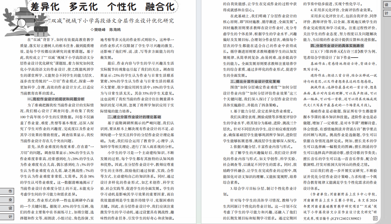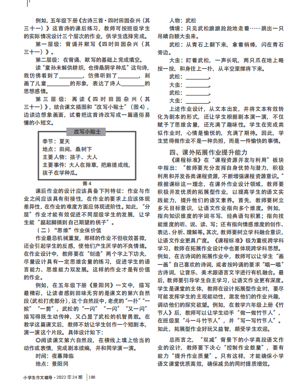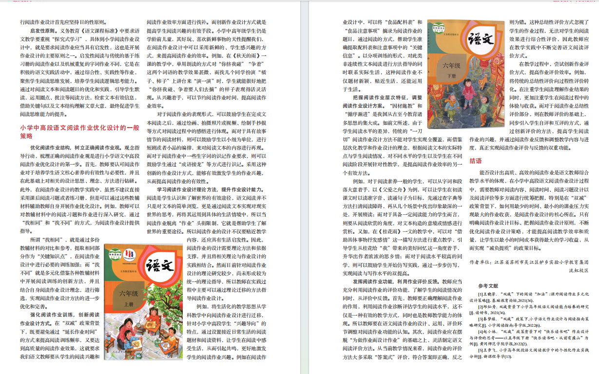"双减"背景下小学语文高段“三联”作业设计课题学习资料