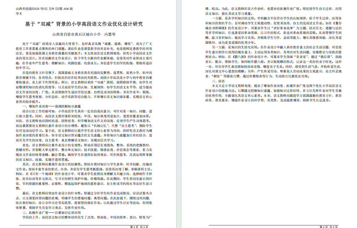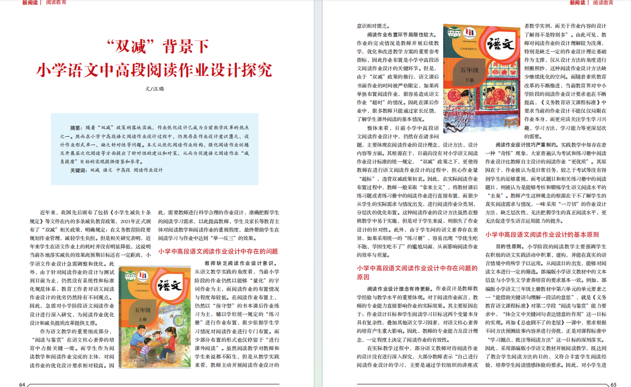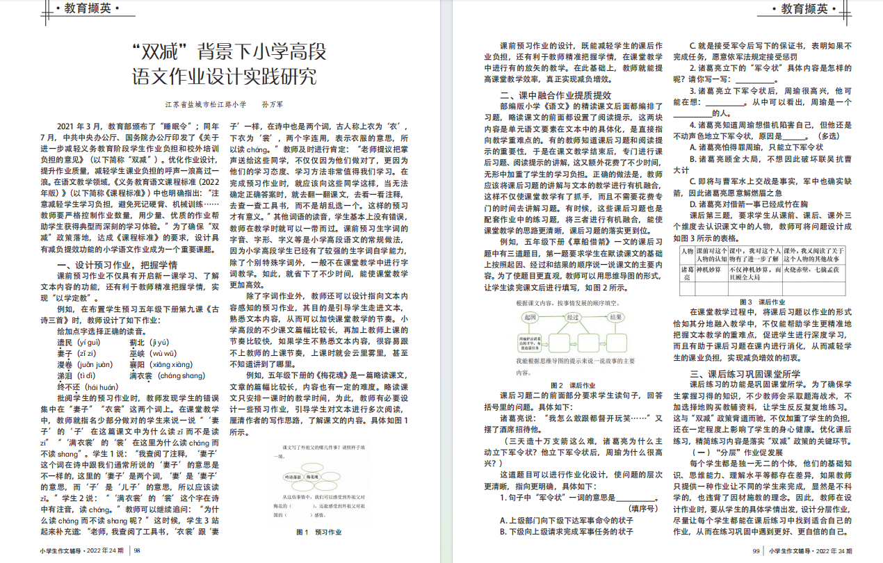 在研(黄培培“双减”背景下小学语文高段“三联”作业设计的行动研究 太仓微型)